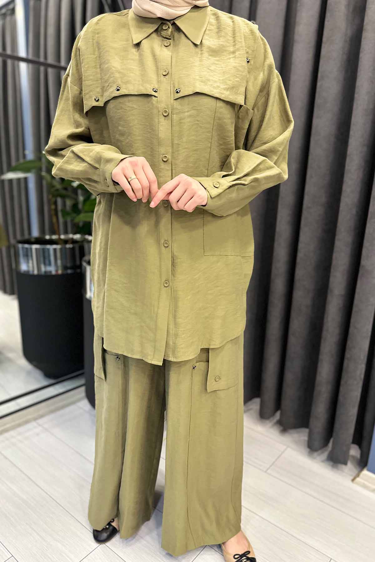 ÖNDEN DÜĞMELİ UZUN CEP DETAYLI TUNİK